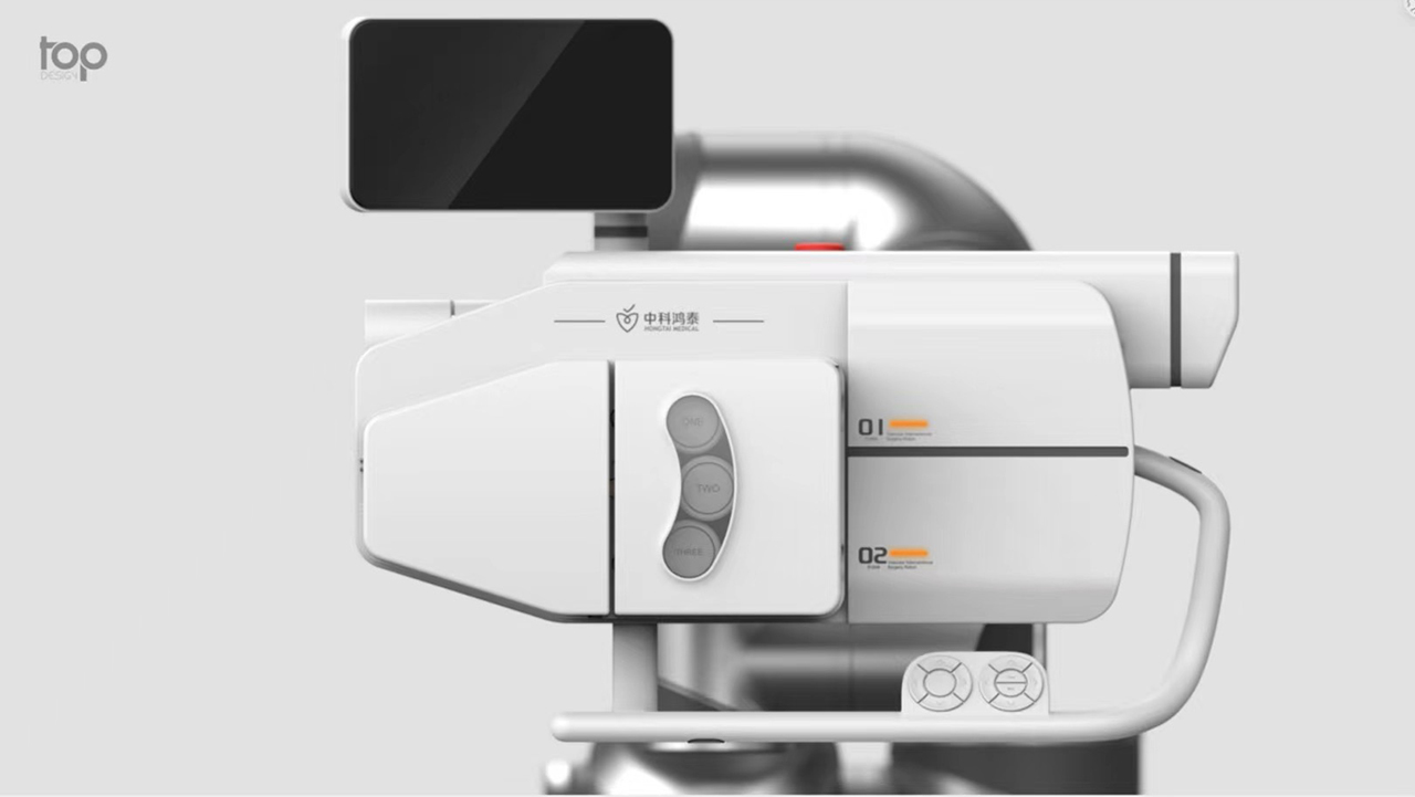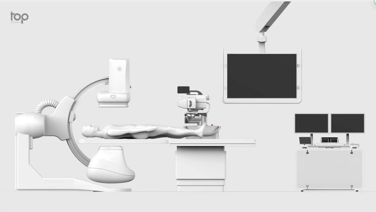 這是一款介入手術設備,通過可靠的機器輔助及AI算法,能夠協助醫生更快捷的完成手術,同時儀器也具備遠程手術的能力;外觀上以專業而可靠的設計風格為基礎,巧妙地運用幾何穿插的設計技巧,創造出較強的視覺層次效果。通過大塊的去曲面拼接,營造出一種恢宏大氣的感受,給人留下深刻的印象。
