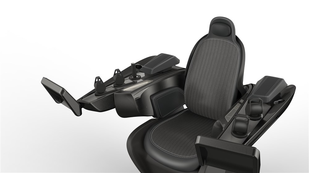 該方案由座椅、座椅底座以及操作臺三個部分組成。結合使用環境,在設計的時候,追求一種溢價感和舒適度:座椅部分設計靈感主要來自于豪華轎車內飾,由真皮縫制而成,體現高端舒適,座椅兩側也分別設計了真皮靠墊,避免由于顛簸產生的碰撞,保護人的安全,同時,座椅靠背可以前后調節,更加人性化;座椅底座部分也充分體現豪華大氣的感覺,外觀穩重而不單調,腳蹬部分也可以上下調節;