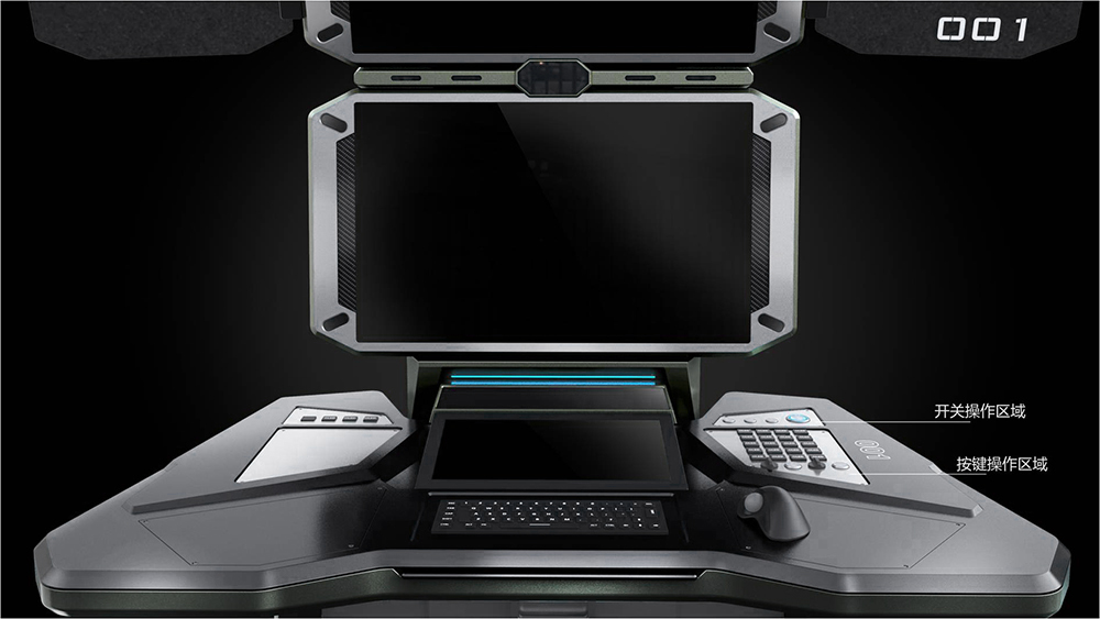 為某艦艇設計的顯控臺,造型上通過霸氣的折線處理讓產品科技感爆棚,同時精心的人因工程考慮也必不可少。