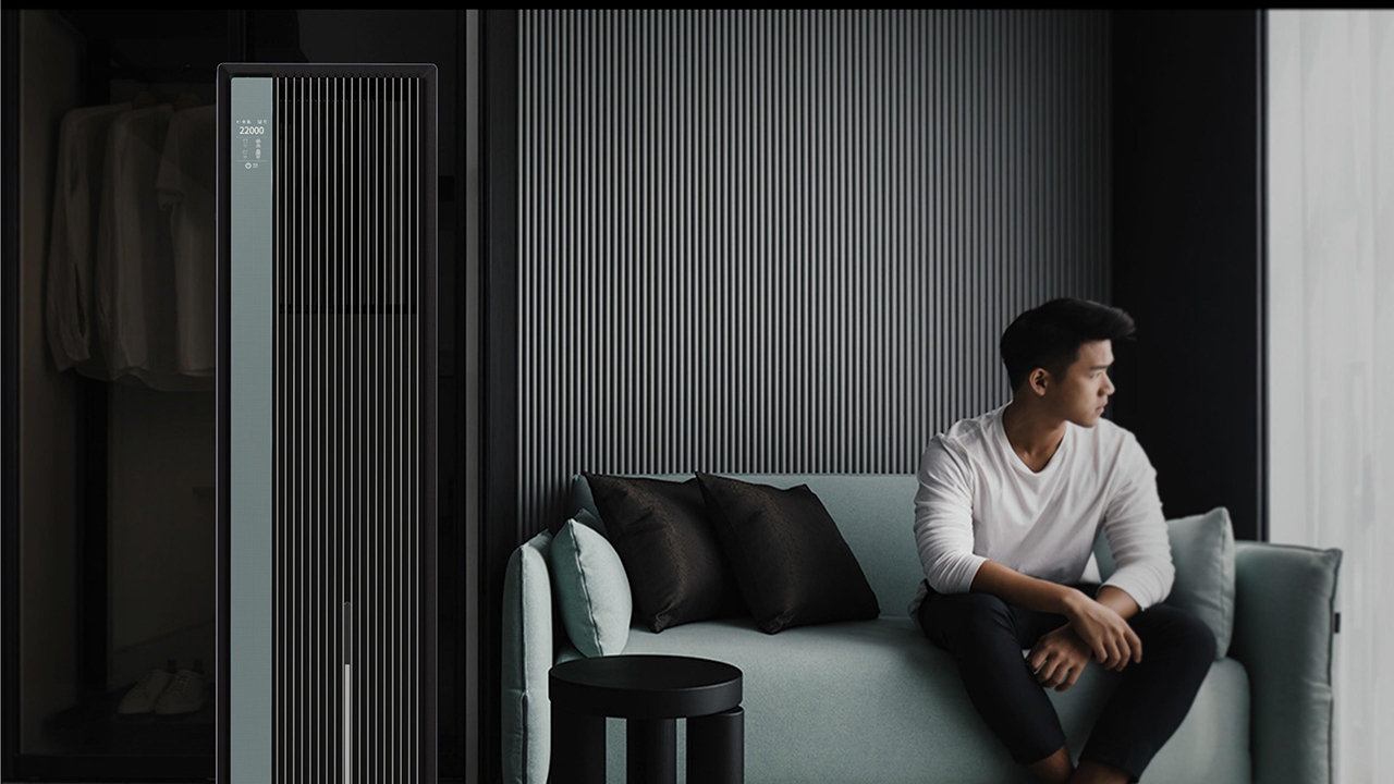 一個新物種必定有它不同尋常之處,我們希望營造一種更高階的文化,在設計之初,我們出發點是此產品因定位給人的第一印象感覺,因為它的使用場景和定位人群會使得這個產品外觀上的第一印象是大氣高端,且在風格上是有別于普通白電產品。當然我們設計新產品外觀時,我們希望它是與這些高檔場所是和諧一體的,所以我們也結合了需多高端場所中所存在的設計元素,并將整個出風格柵形狀延續到底部,讓整個產品的視覺沖擊力更強。