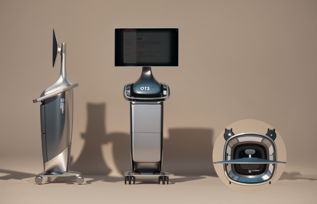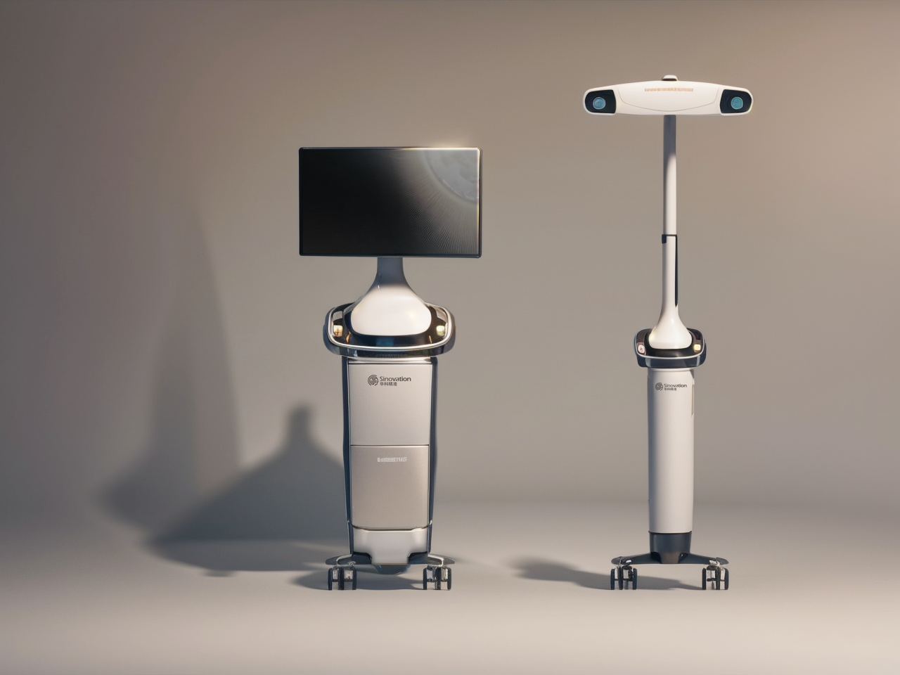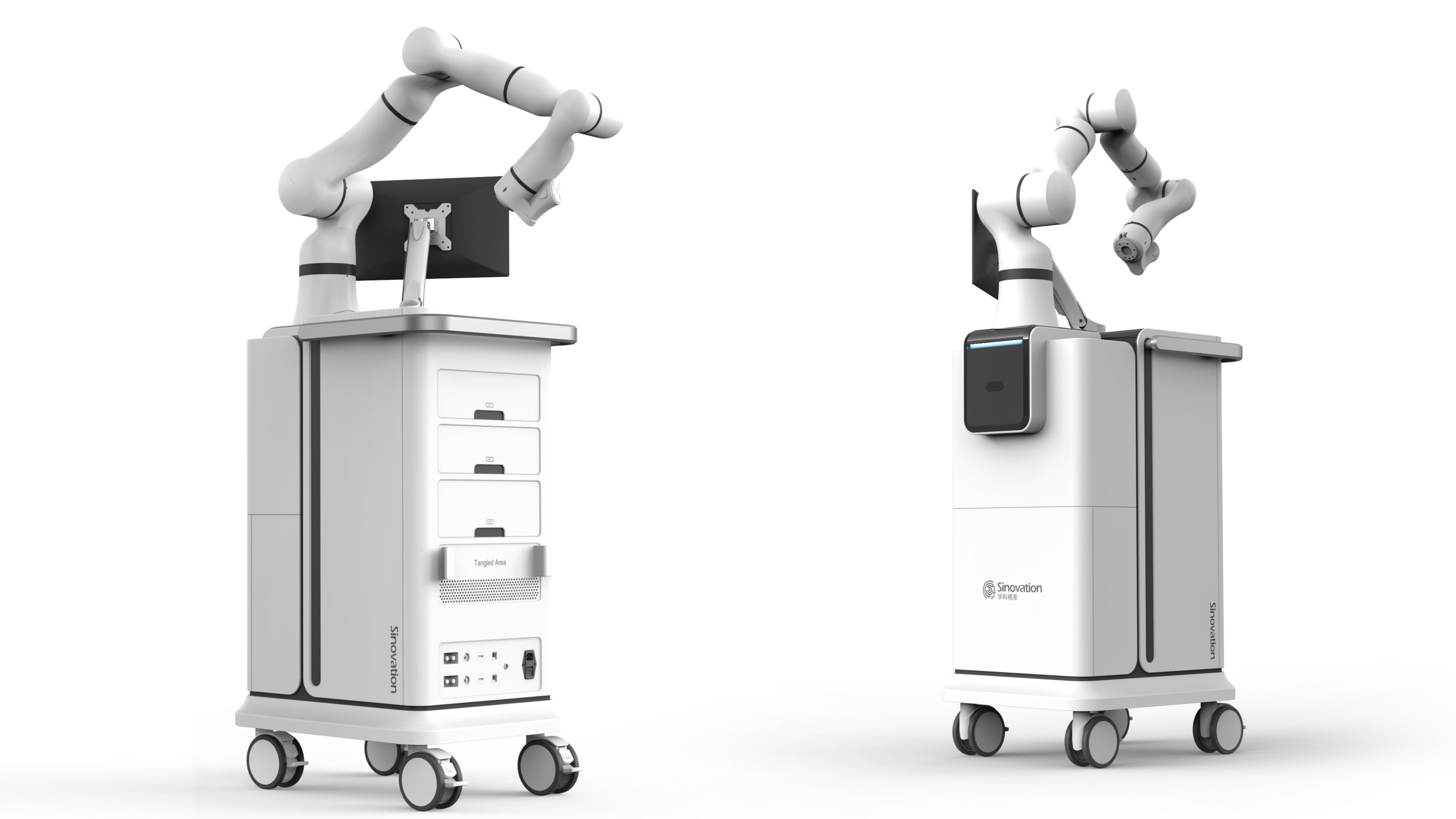新一代外科機器人采用包裹的設計方式,讓產品整體更有層次,視覺上更加輕盈,同時將產品運用重色,將產品重心穩定在底部。 簡約化的造型,更方便加工制作。 底部萬向輪部分采用輻型設計,更方便的解鎖4個萬向輪,減少遮擋。